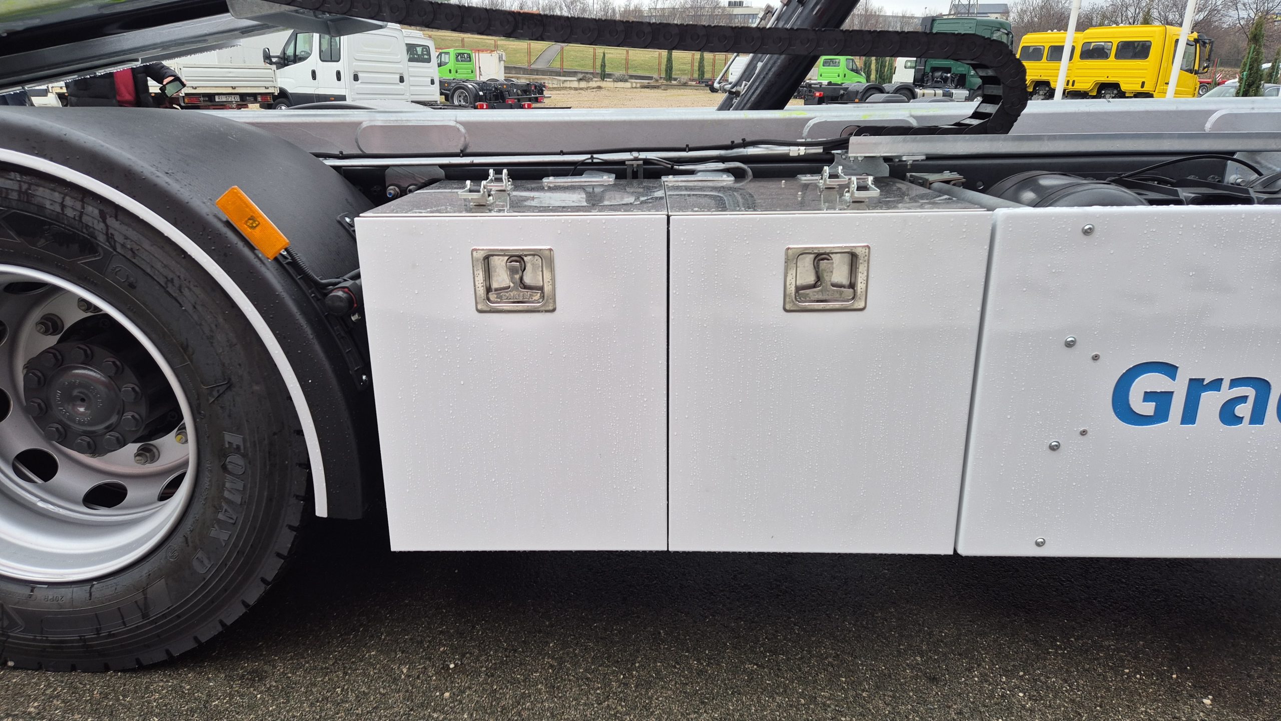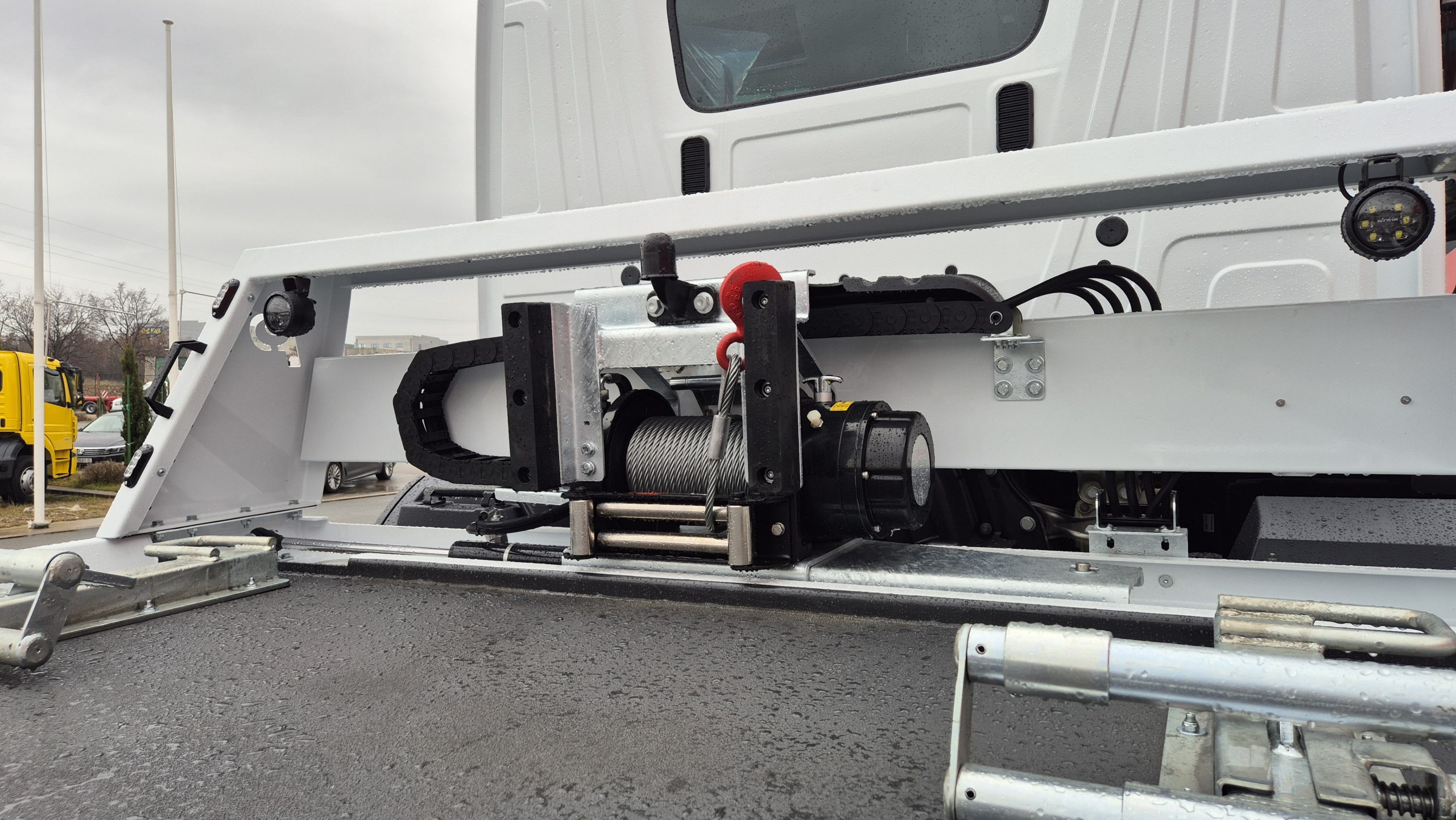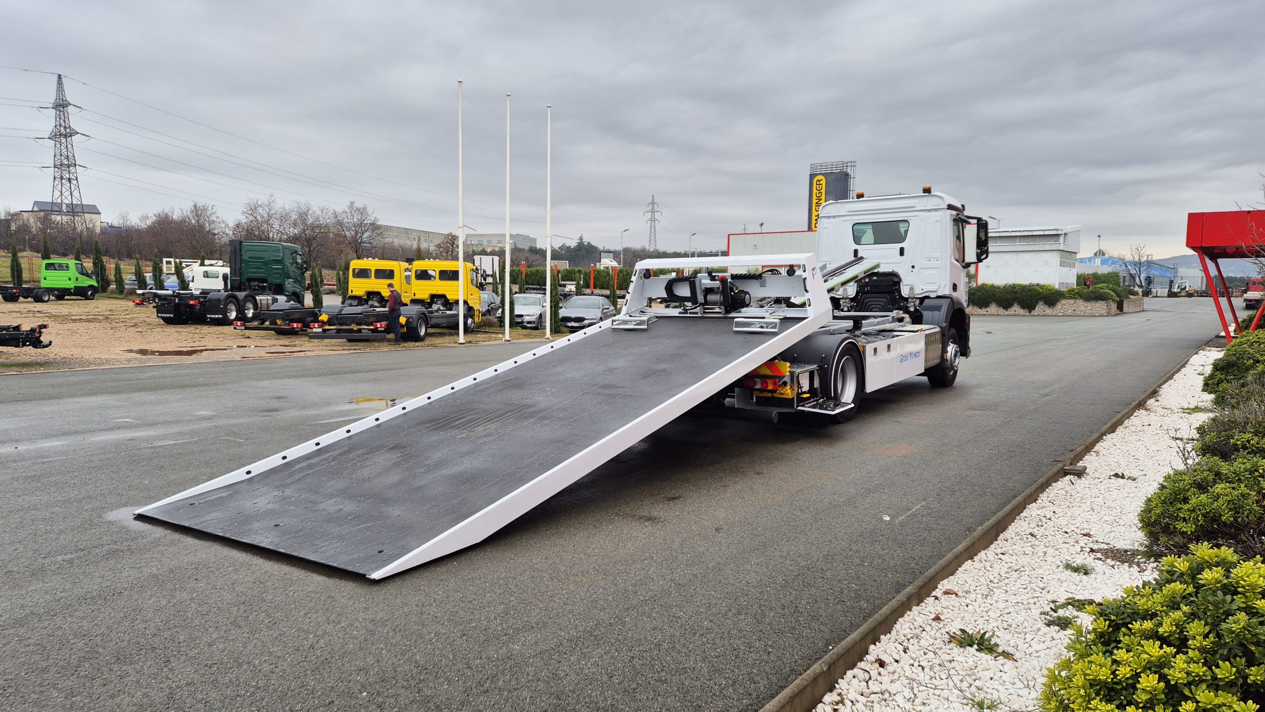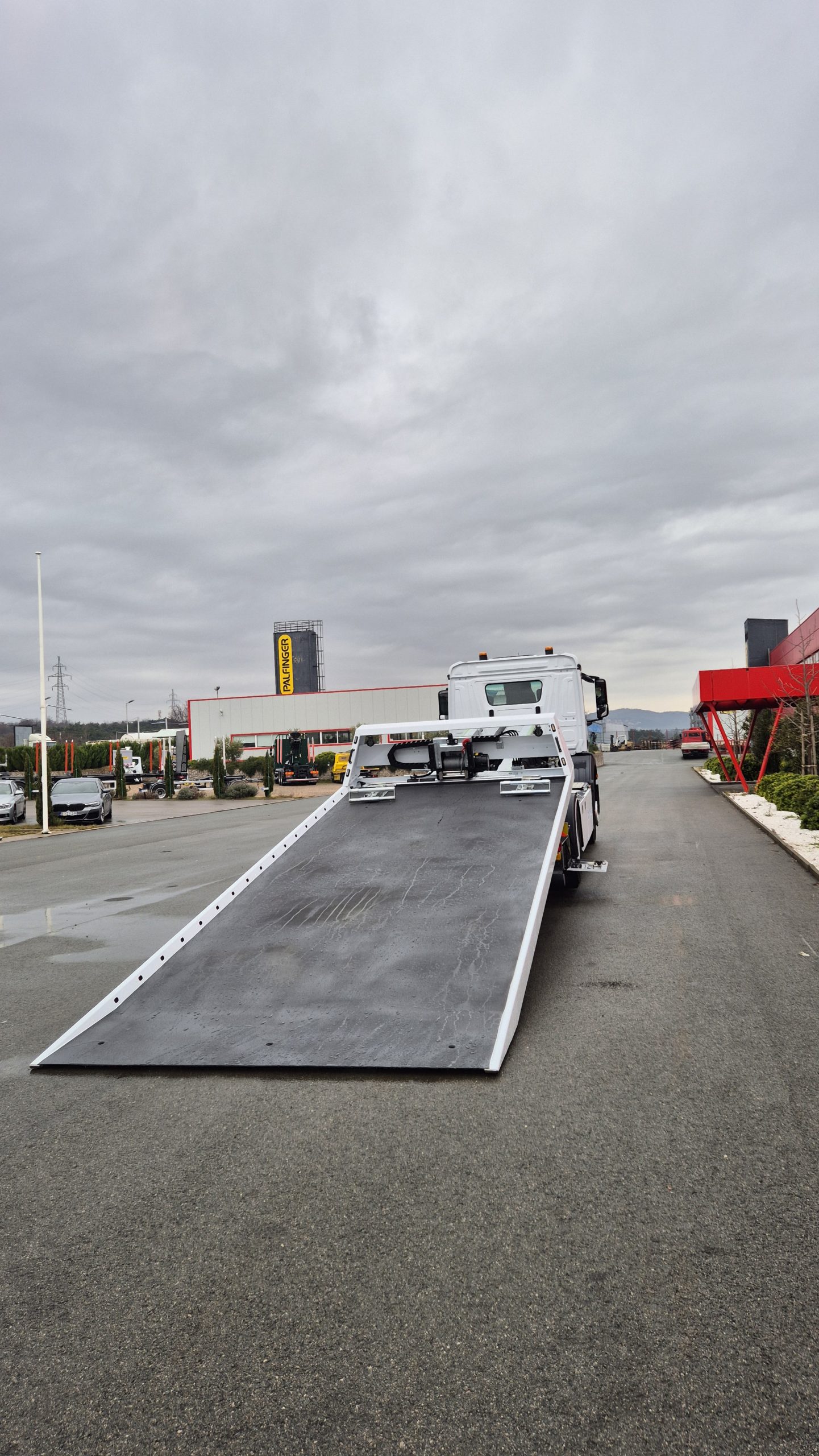 Klizna platforma ima dimenzije 5.850 x 2.400 mm te je konstruirana sa dva cilindra za podizanje platforme i jednim kliznim cilindrom. Opremljena je sa zaštitnim prednjim zidom, integrisanim podmetačima točkova, LED reflektorima te hidrauličnim pomičnim vitlom potezne sile 5.000 kg i sajlom dužine 25 m. Upravljanje platformom obuhvata šest funkcija koje omogućavaju podizanje i spuštanje platforme, izvlačenje i uvlačenje vitla te pomicanje vitla lijevo ili desno. Nadogradnja uključuje kutiju za alat od nehrđajućeg čelika sa LED osvjetljenjem.